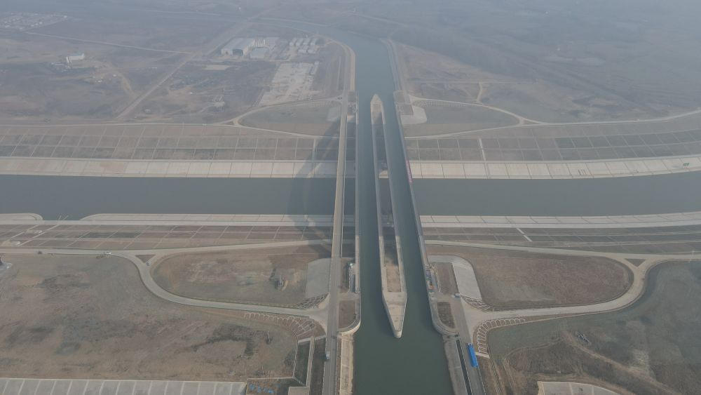12月30日拍攝的試通水通航后的引江濟淮淠河總干渠渡槽(無人機照片)。新華社記者 劉軍喜 攝