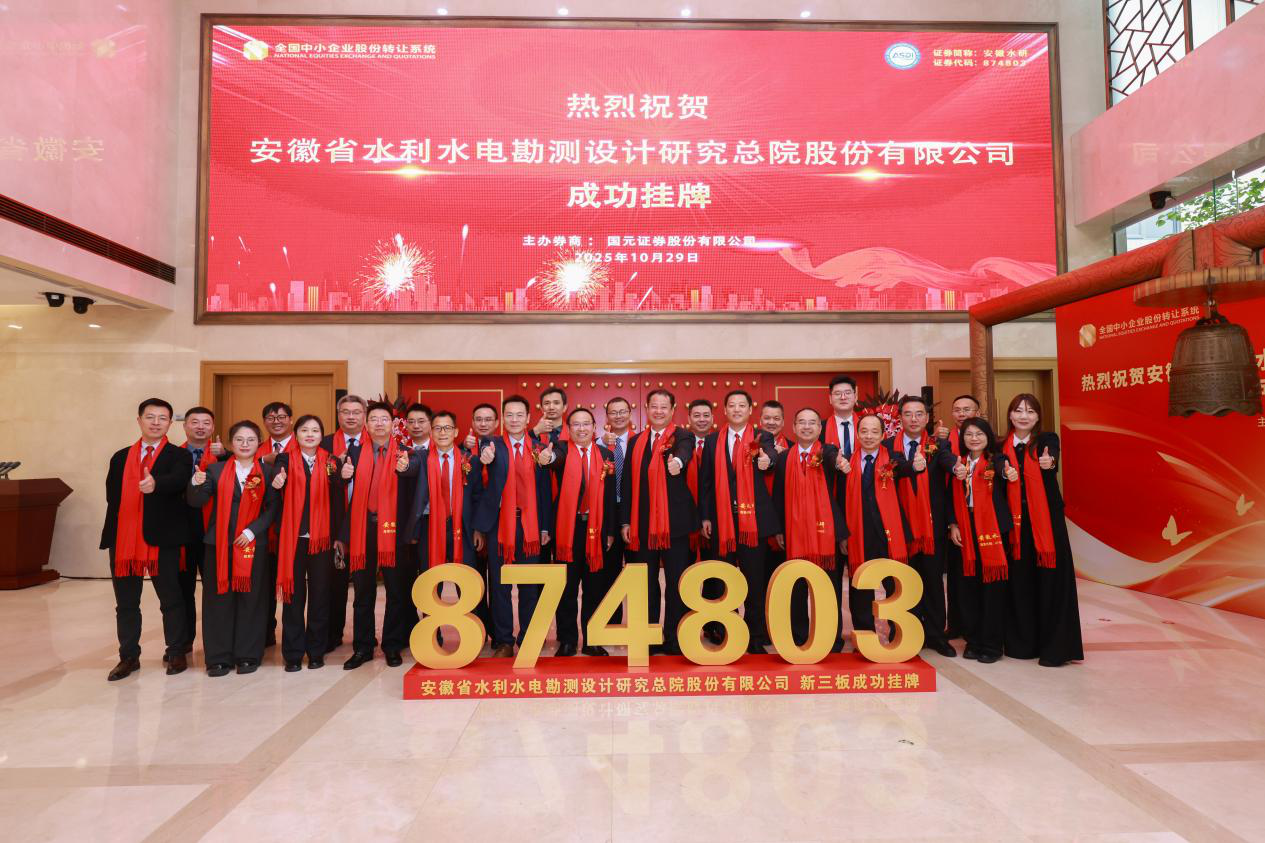 從佛子嶺水庫到淠史杭灌區,從淮河上的 “三峽工程” ——臨淮崗洪水控制工程到安徽基礎設施 “一號工程” 引江濟淮工程,安徽水研數十年如一日,始終緊跟國家水利基礎設施建設與生態文明建設導向,長期服務安徽水利頂層規劃論證,深耕水利水電勘測設計領域,是區域水利建設的中堅力量。此次登陸新三板,安徽水研將借助全國股轉公司這一國家級平臺,進一步匯聚優質資源、激活發展新動能,在規范治理中提升核心競爭力,在資本運作中拓寬發展空間,深刻踐行 “節水優先、空間均衡、系統治理、兩手發力” 的新時期治水思路,以資本市場為依托,書寫水利事業高質量發展的新華章。